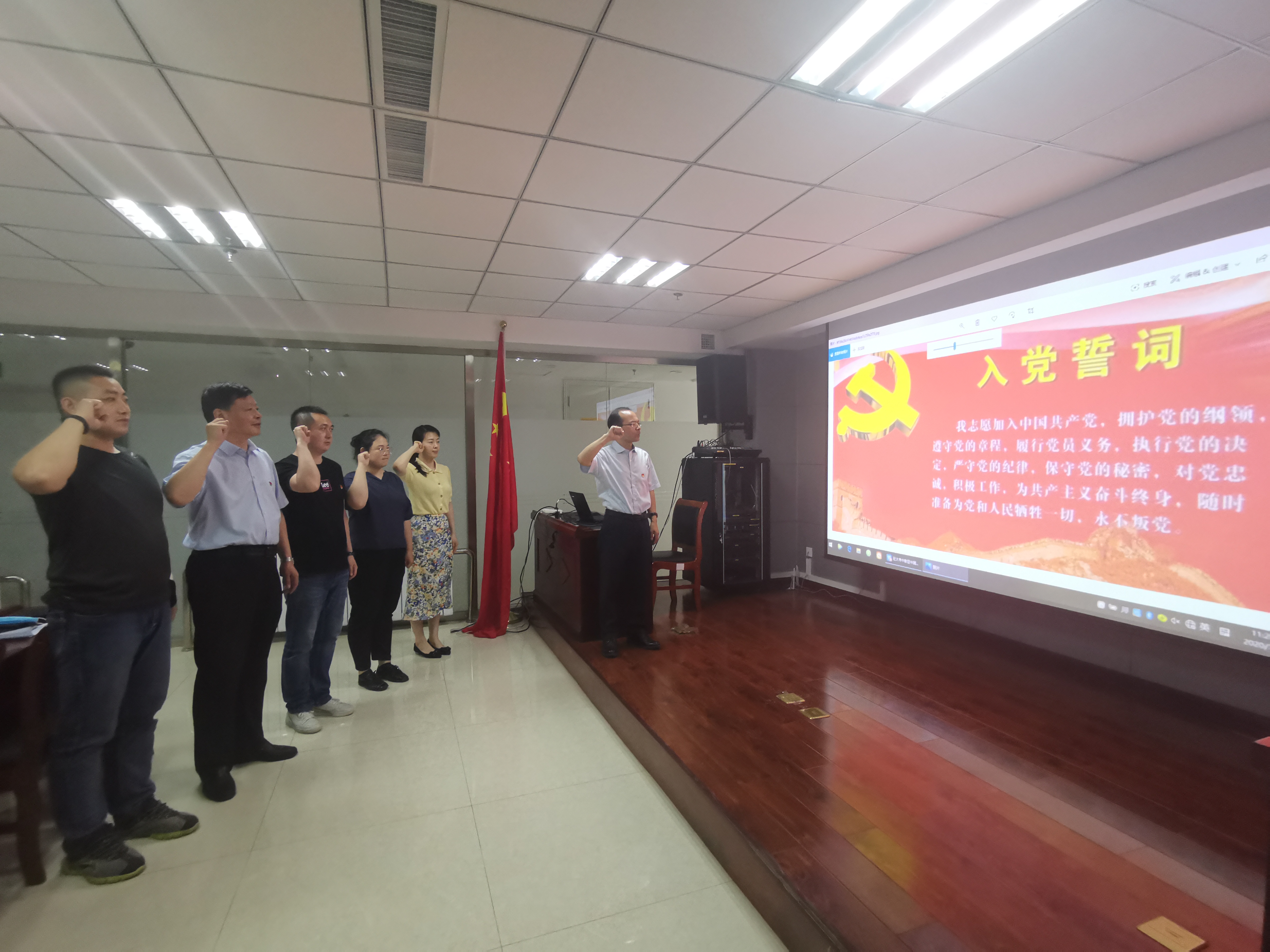 7月1日上午,中共乐鱼手机网页版登录入口第二支部委员会开展“重温入党誓词 永葆入党初心”七一献礼活动,纪念中国共产党建党99周年。